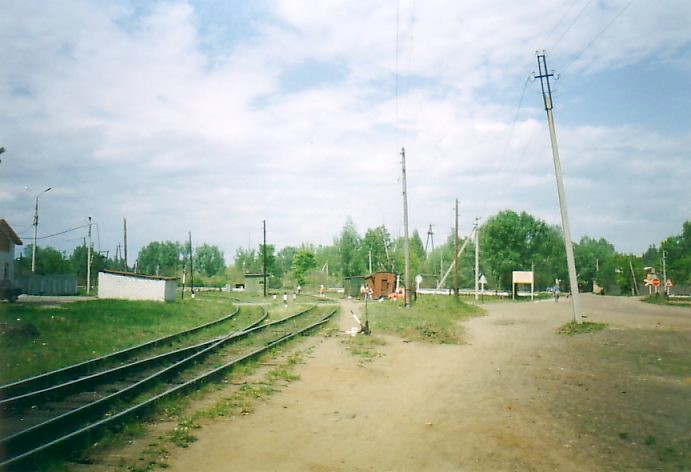 К западу от станции Выкса-Верхняя. Впереди — переезд (улица Почтовая). Вид в сторону станции №1.