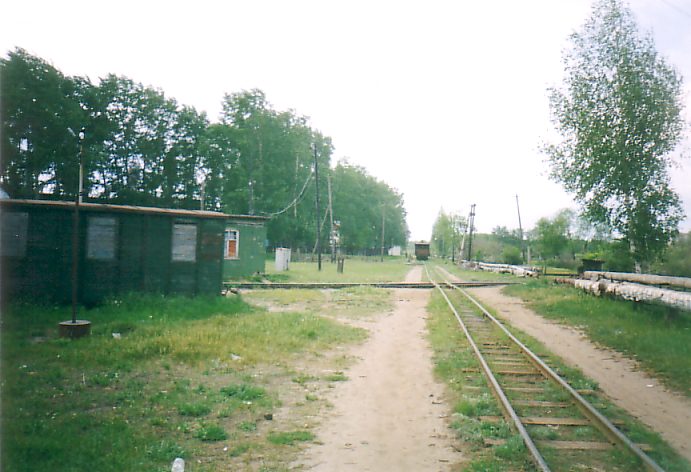 «пересечения». Вид в сторону станции Павильон Лесовозной узкоколейной железной дороги.