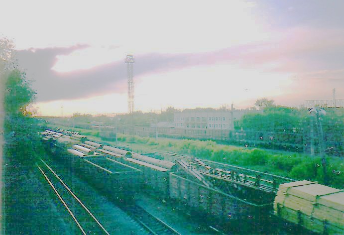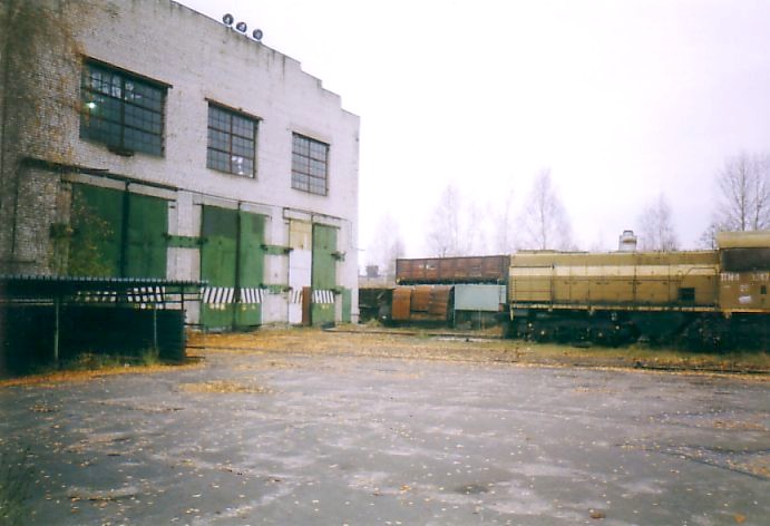 У главного депо железных дорог Выксунского металлургического завода. Справа можно заметить