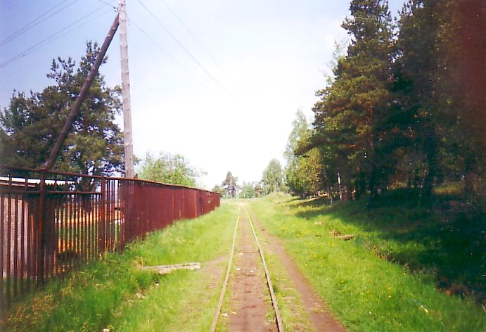Участок пути, пролегающий вдоль ограды территории «лесозавода». Вид в северном направлении.