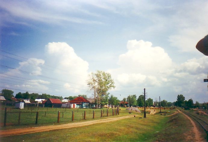 Состав следует из Павильона в Унор. Северная окраина посёлка Виля, вид в северном направлении.