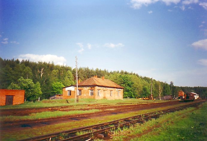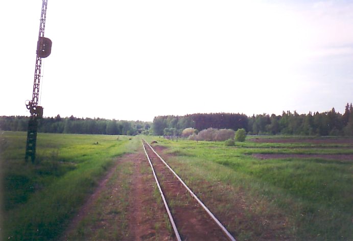 Впереди — закрытая станция Домики. Вид в сторону Унора.