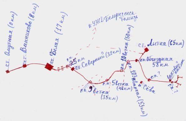 Простейшая схема расположения линий узкоколейной железной дороги, по состоянию