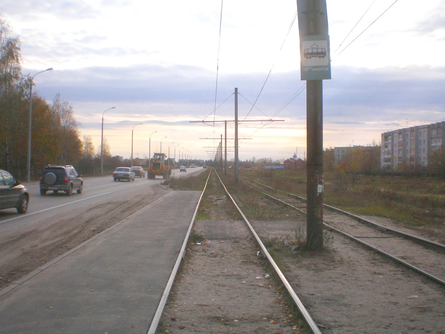 Линия от «Швейной Фабрики» к железнодорожному вокзалу. Вид в сторону вокзала. Остановка «18-я школа».