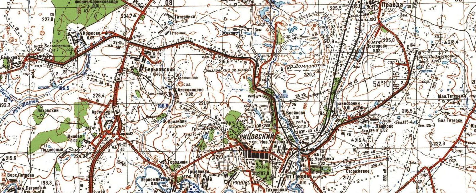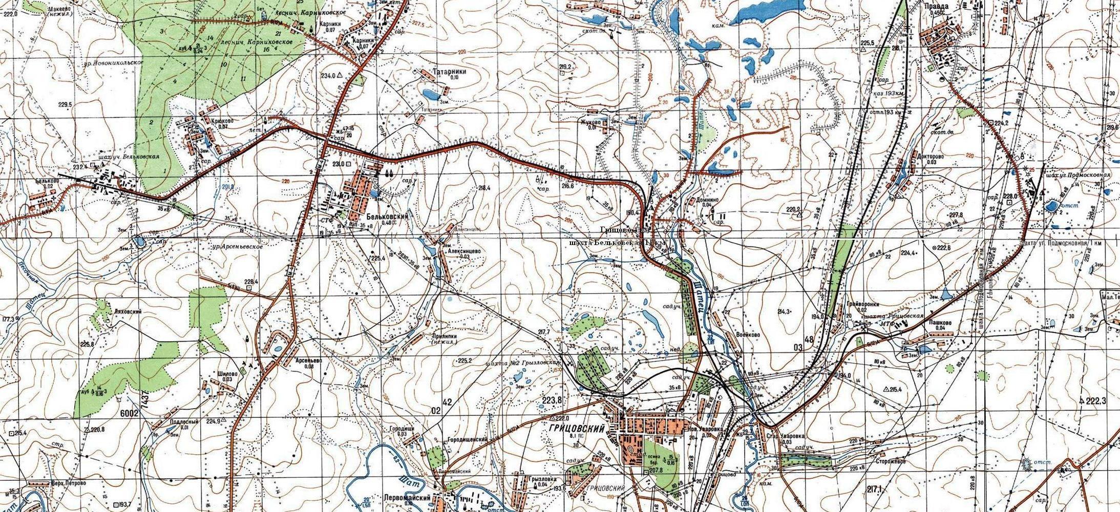 ЖЕЛЕЗНОДОРОЖНАЯ ЛИНИЯ ГРИЦОВО — ШАХТА «БЕЛЬКОВСКАЯ», ШАХТА «ПОДМОСКОВНАЯ» СХЕМЫ И ТОПОГРАФИЧЕСКИЕ КАРТЫ