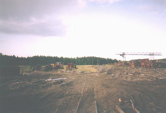 Вид оттуда же в северном направлении. Впереди стоят разгромленные тепловозы,