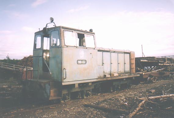 Тепловоз ТУ6А-3210 на площадке накопления хлыстов. Вид со стороны нижнего склада.