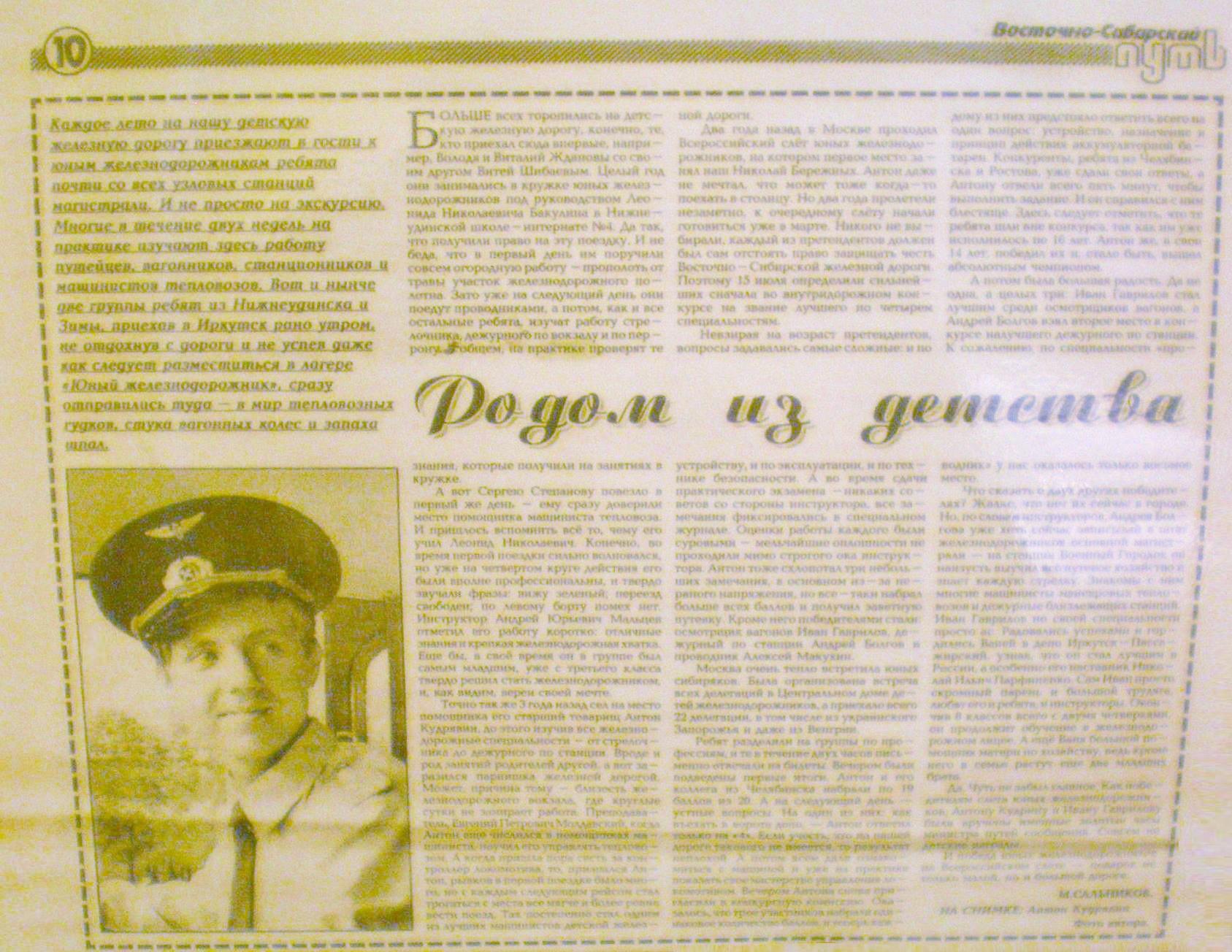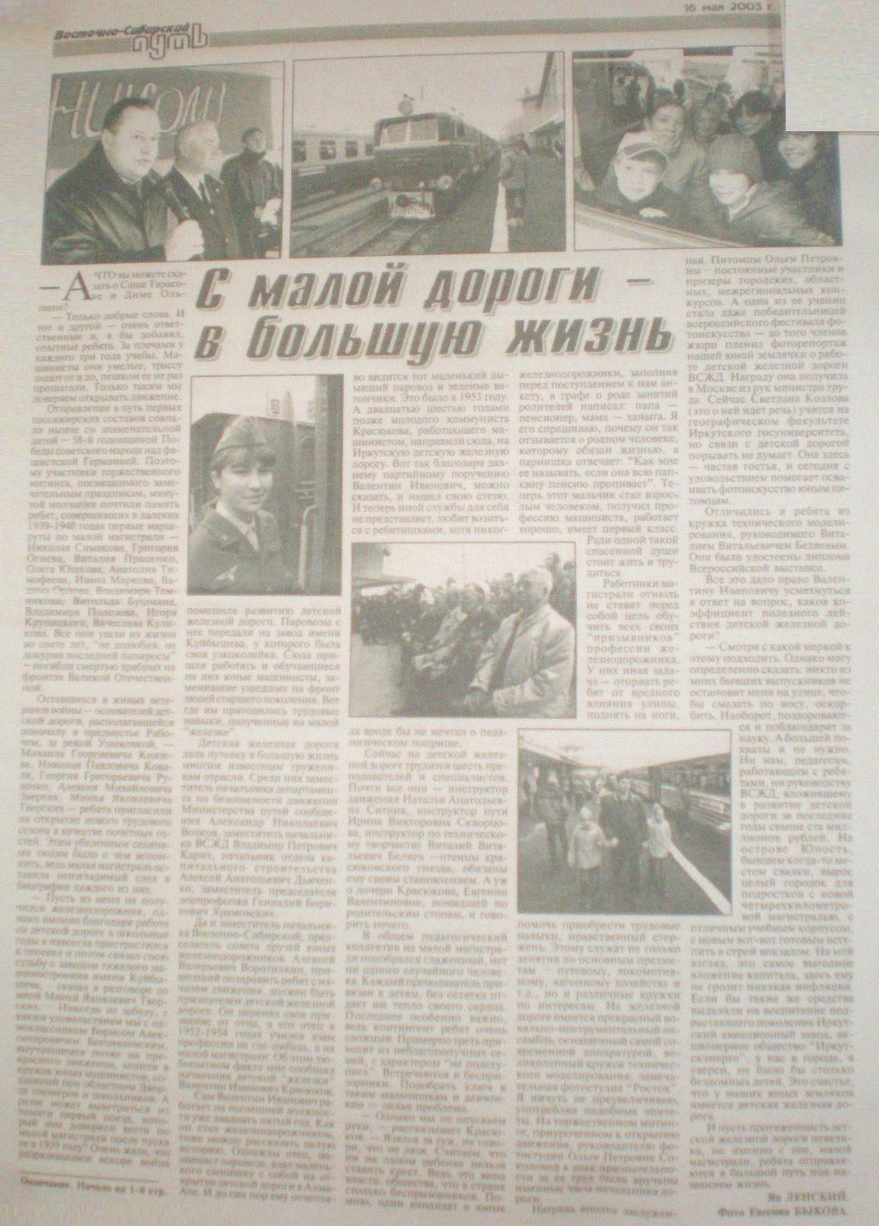 «С малой дороги — в большую жизнь». Отраслевая газета Восточно-Сибирской железной дороги «Восточно-Сибирский путь», 16.05.2003.
