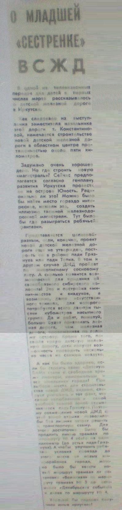 «О младшей «сестрёнке» ВСЖД». 198? год.