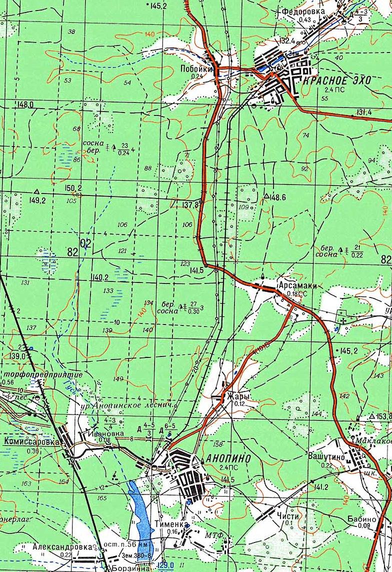 УЗКОКОЛЕЙНАЯ ЖЕЛЕЗНАЯ ДОРОГА АНОПИНО — КРАСНОЕ ЭХО ТОПОГРАФИЧЕСКИЕ КАРТЫ