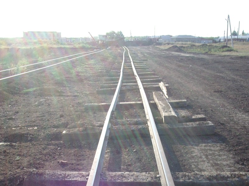 Вид из той же точки в противоположном направлении. Впереди - конец рельсового пути широкой колеи.