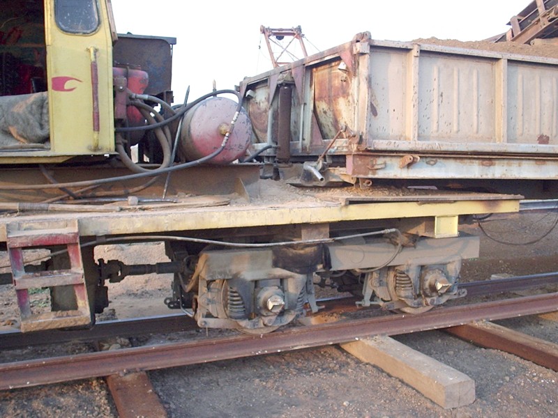 Загрузка думпкара завершается. Вид со стороны рельсового пути широкой колеи.