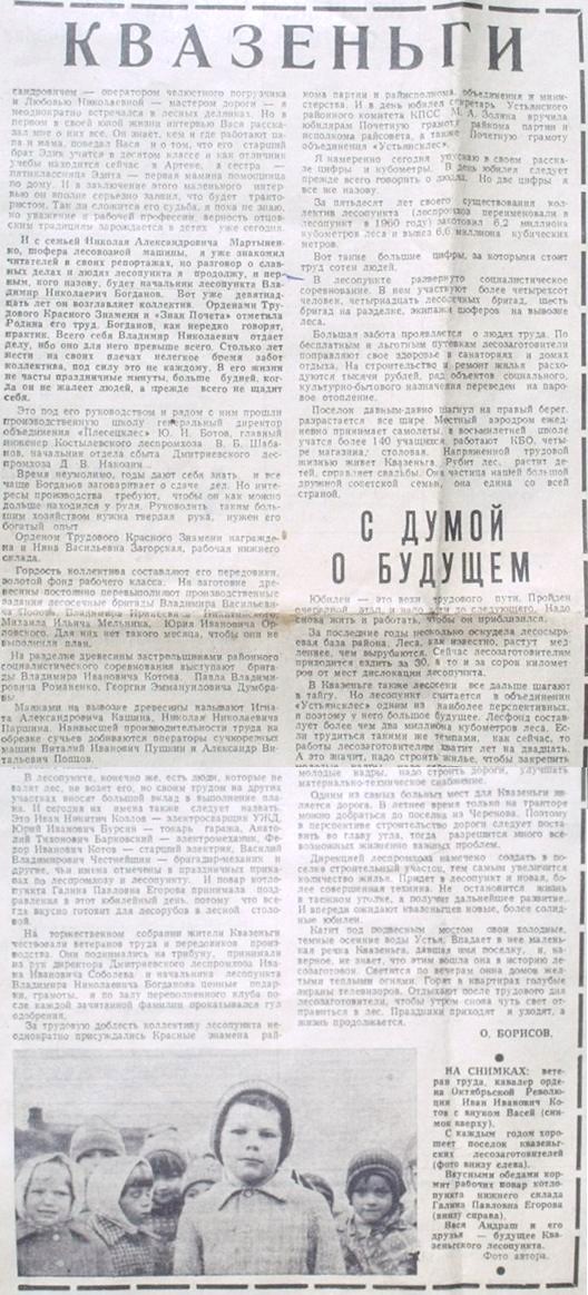 Материал о посёлке Квазеньга (газета «Устьянский край»).