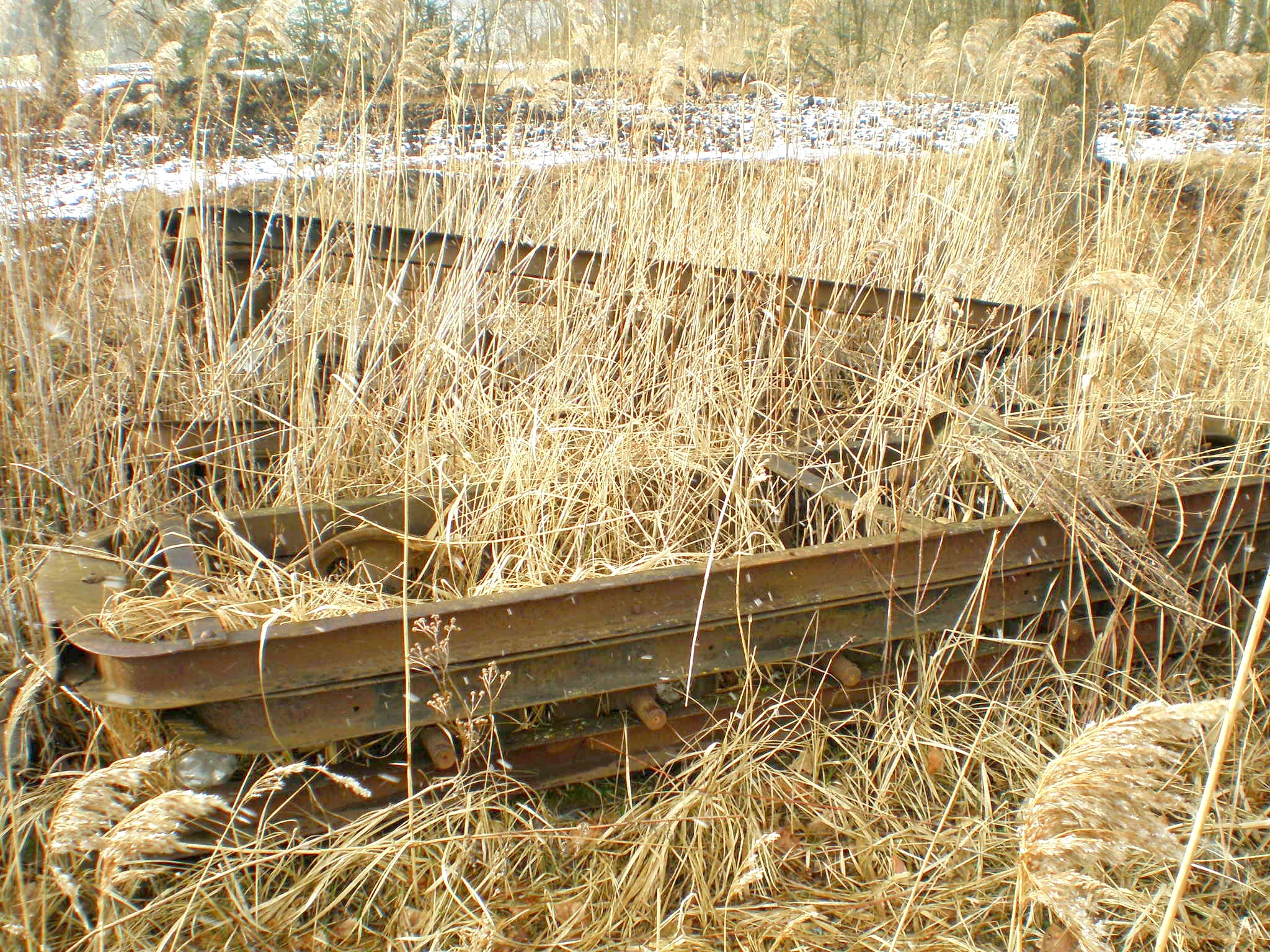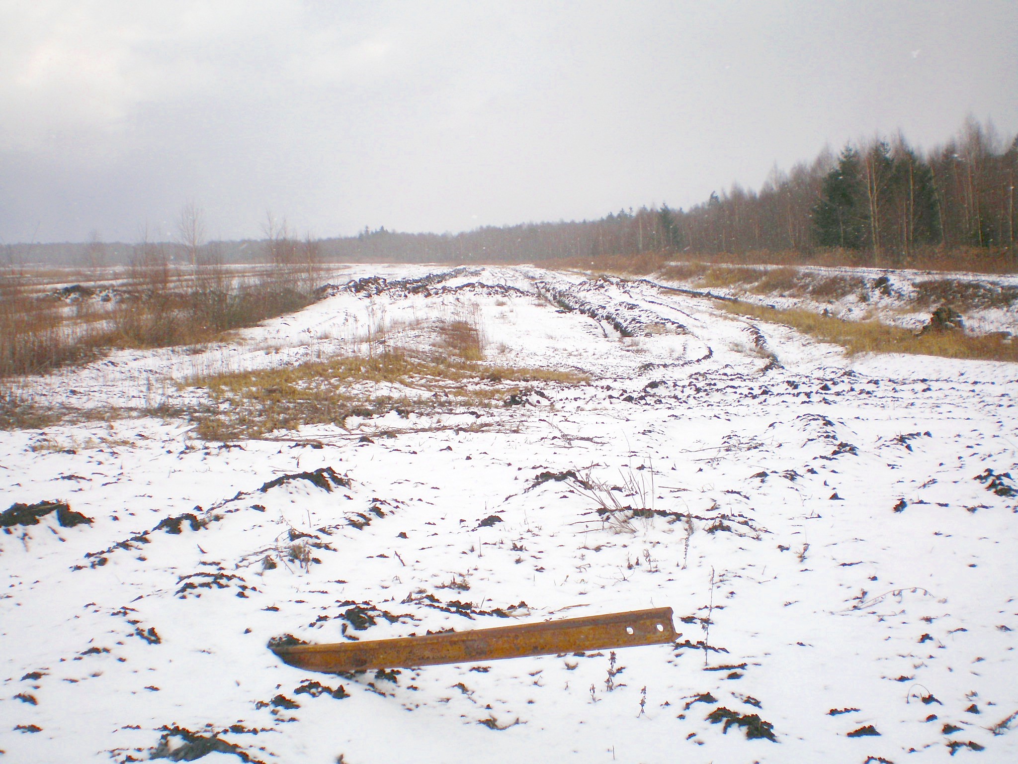 Разобраная линия узкоколейной железной дороги к северу от производственной площадки. Вид в восточном направлении.