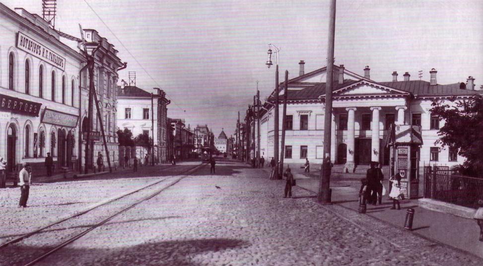 «Трамвай на Большой Покровке. Здание Дворянского собрания (справа). 1900-е годы».