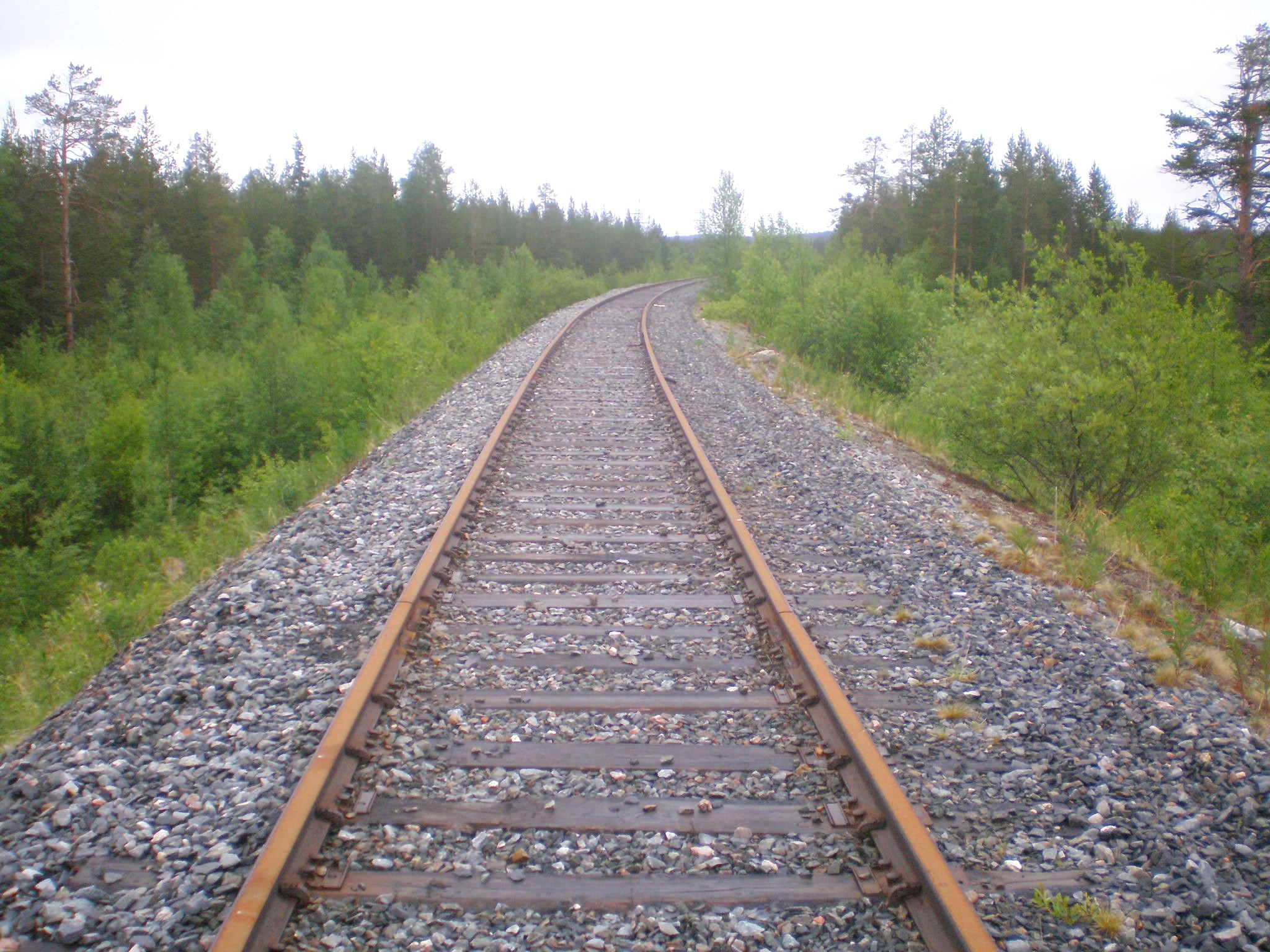 Участок пути от станции Ловозеро до воинской части, вид в сторону станции Ловозеро.
