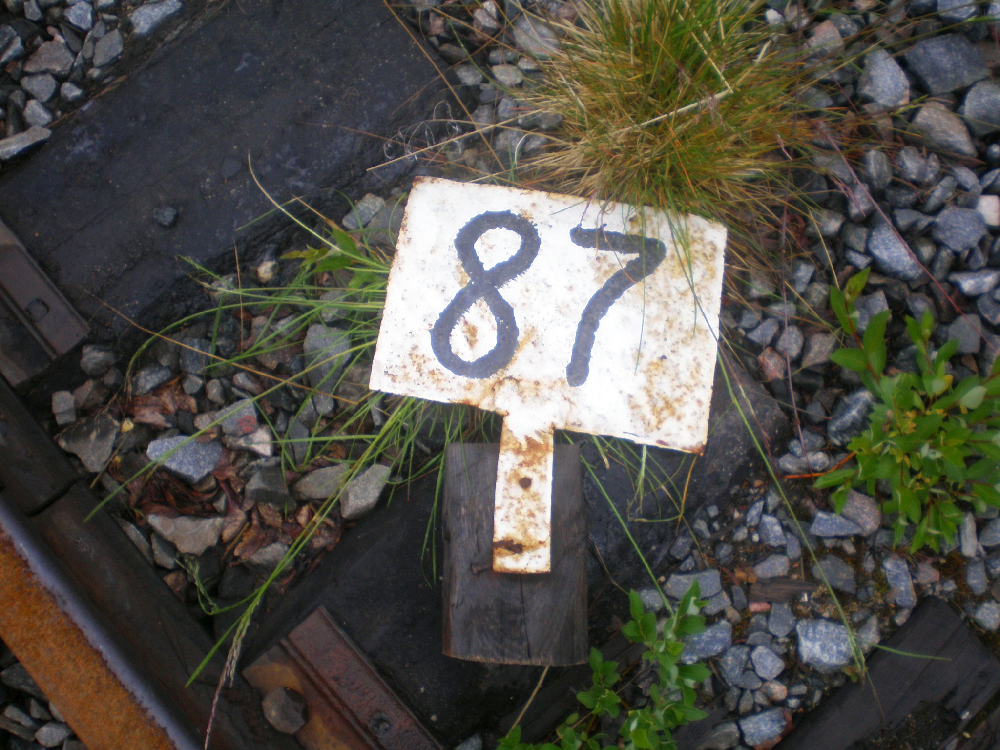 Там же. Километровый знак (конец 86 километра/начало 87 километра), когда-то находившийся на станции Ловозеро.