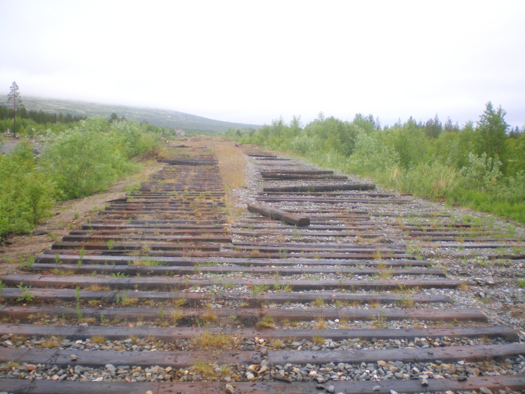 Станция Ловозеро, вид в южном направлении. Конец рельсового пути на ветви от станции Ловозеро до воинской части.