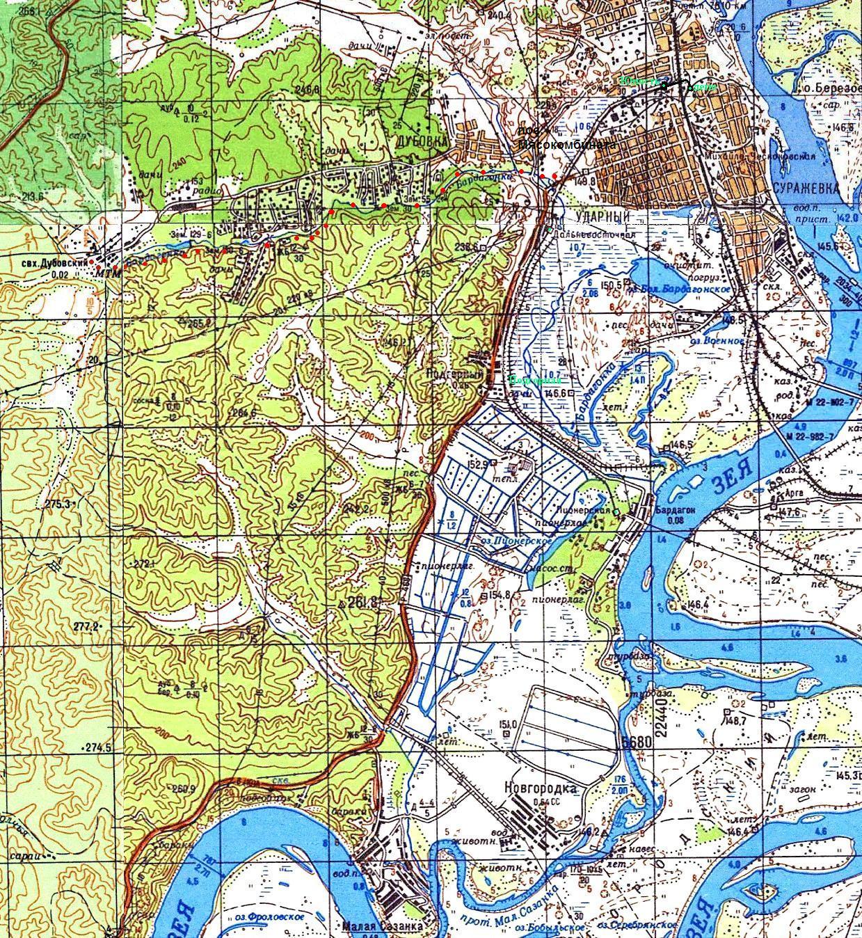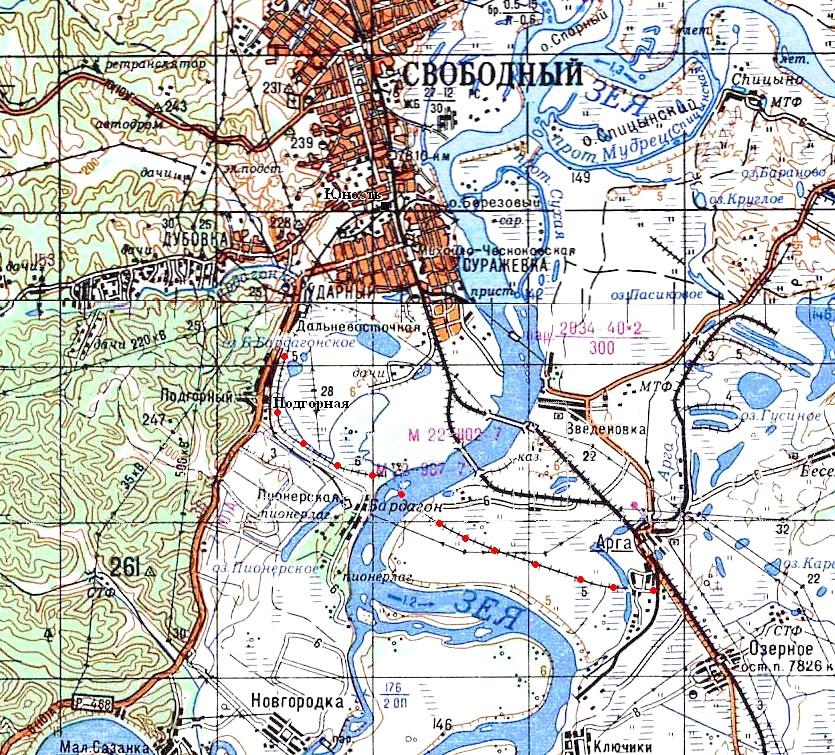 Свободненская детская железная дорога на топографической карте масштаба 1:100 000, изданной в 1991 году