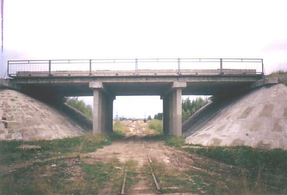 Вид приблизительно оттуда же в противоположном направлении. Впереди — путепровод,