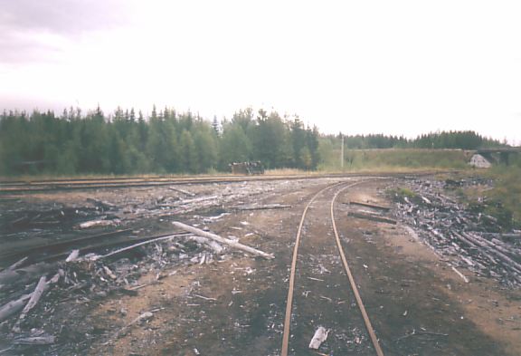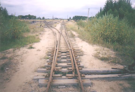 Впереди — южная горловина главной станции Трактовской узкоколейной железной дороги.