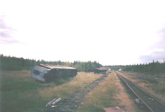 Справа — разграбленные пассажирские вагоны ПВ40.