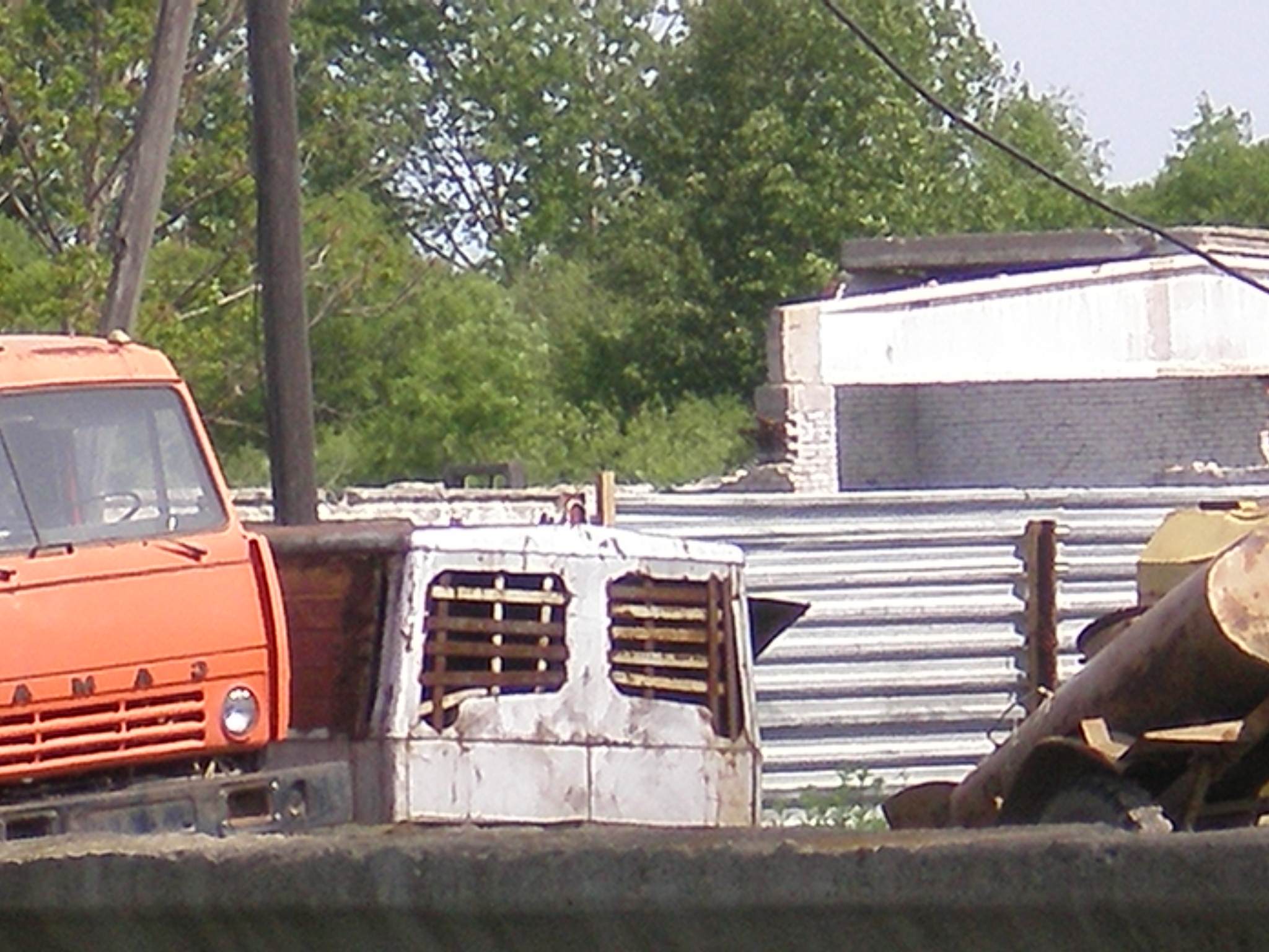 Бывшее депо узкоколейной железной дороги (?) на территории нижнего склада Вяземского леспромхоза. Вдали — кабина тепловоза.