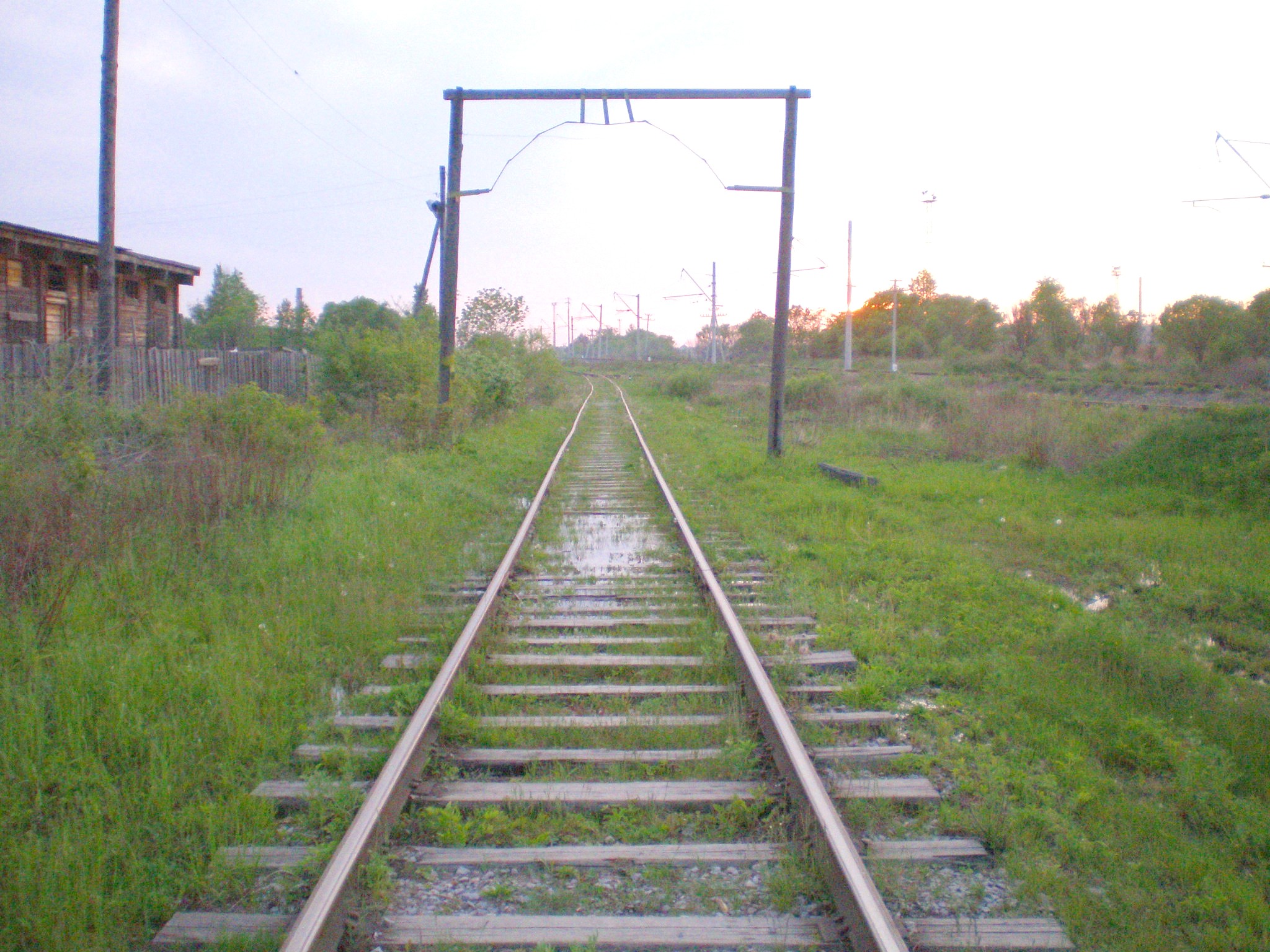 Поздъездной путь широкой колеи, слева от которого ранее пролегала магистраль узкоколейной железной дороги.