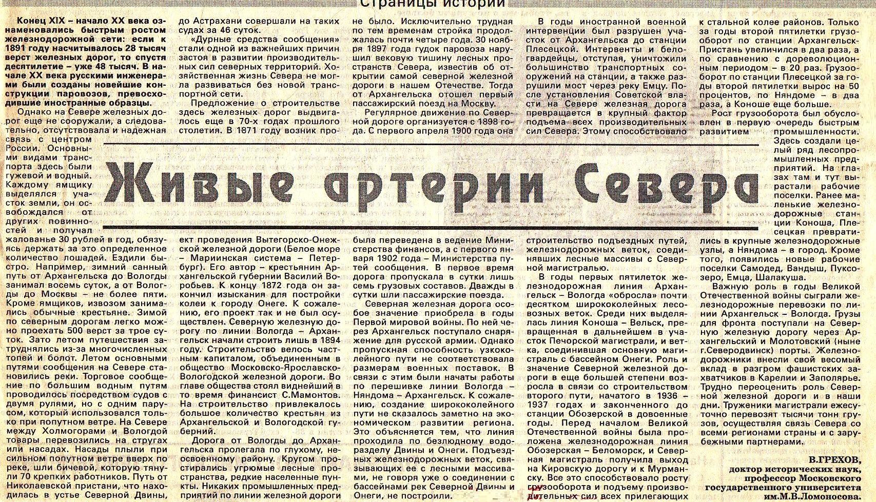 «Живые артерии Севера» (материал из газеты «Гудок», номер за 20.11.1995).