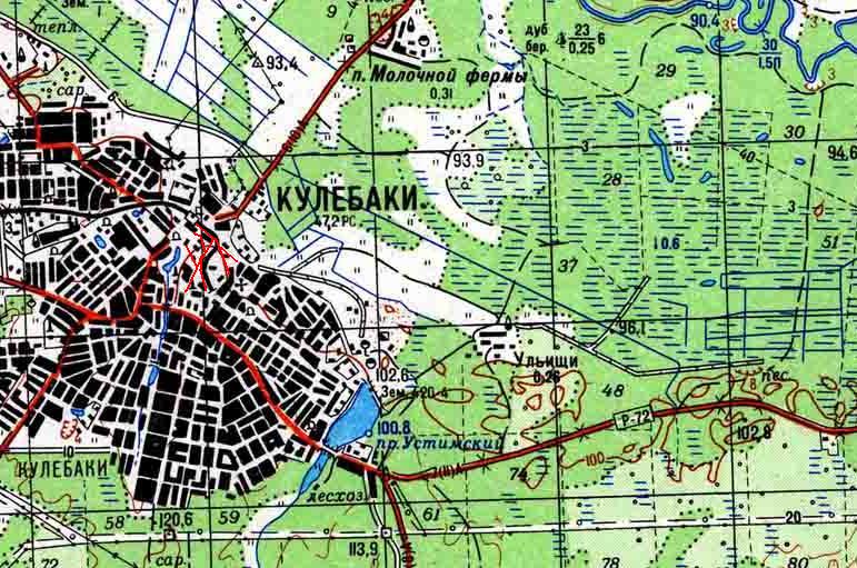 на территории Кулебакского металлургического завода нанесены условно, выделены красным цветом).