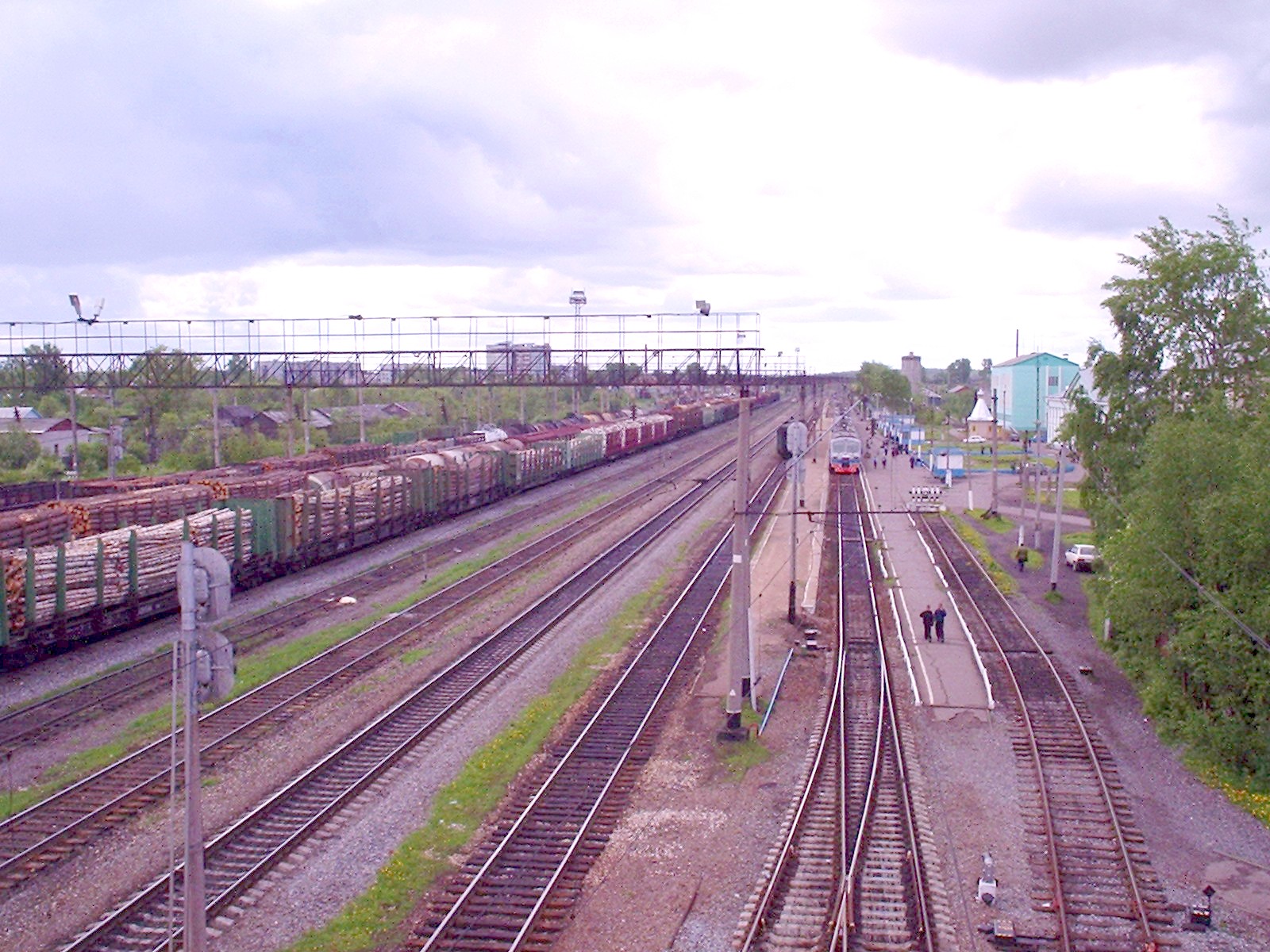 Станция Коноша. Вид со второй платформы в северном направлении.