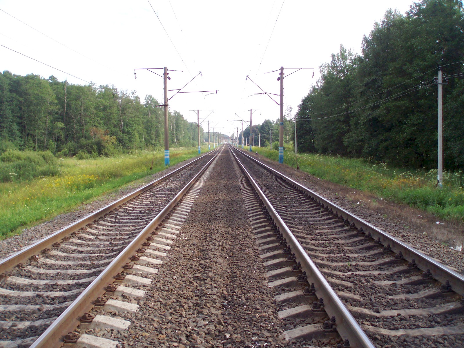 Впереди — конец 387 километра, начало 386 километра. Вид в северном направлении.