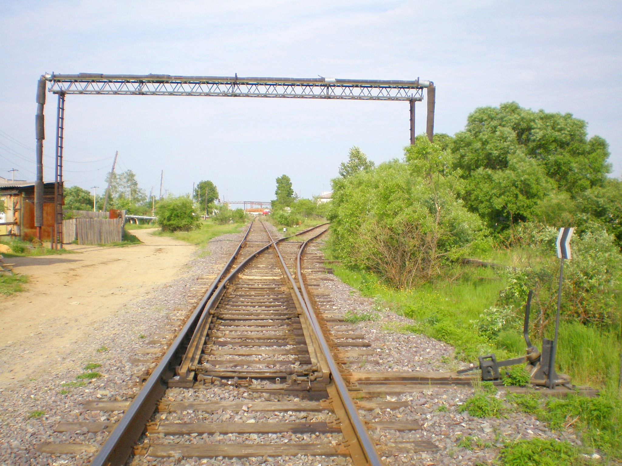 Подъездной путь, связывающей территорию Аурского шпалопропиточного завода со станцией Аур. Вид в сторону станции Аур.