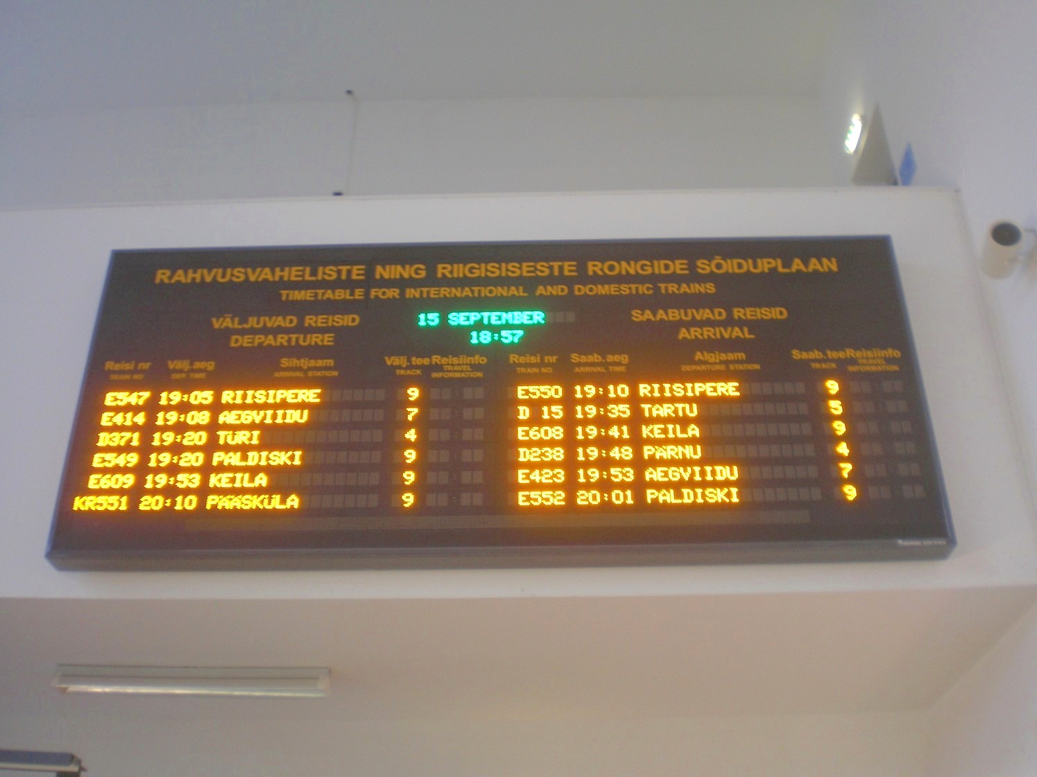 Балтийский вокзал. Информационное устройство, показывающее отправление ближайших поездов.