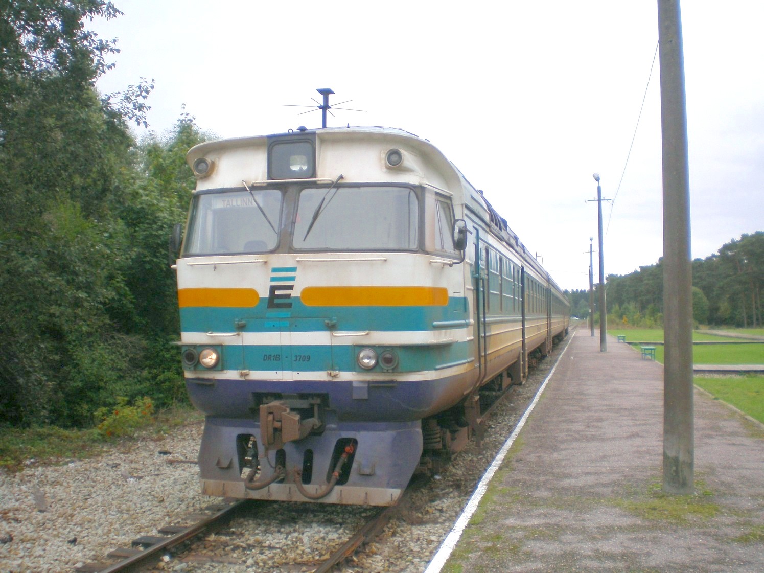 Дизель-поезд в том же месте. Вид на север, в сторону станции Пярну-Грузовой.