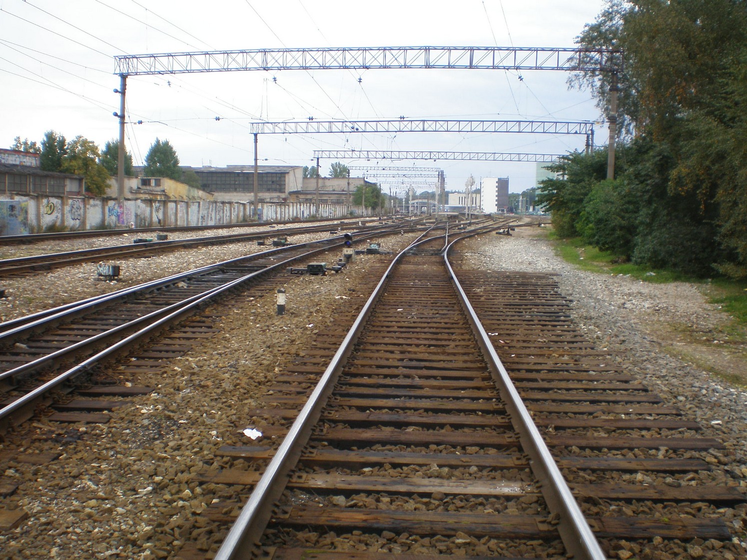 Вид из той же точки в противоположном направлении. Вдали — платформы и тупики.