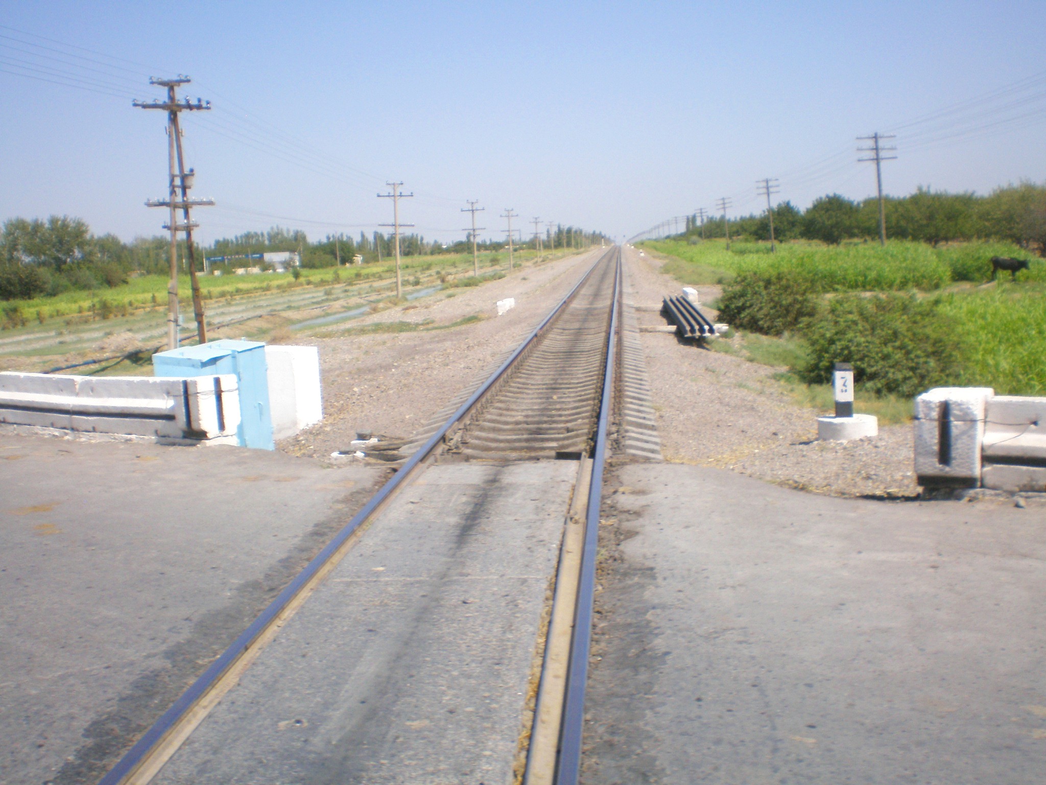 Железнодорожная линия Коканд — Канибадам, перегон Арыкбаши — Канибадам. Вид от переезда в восточном направлении.