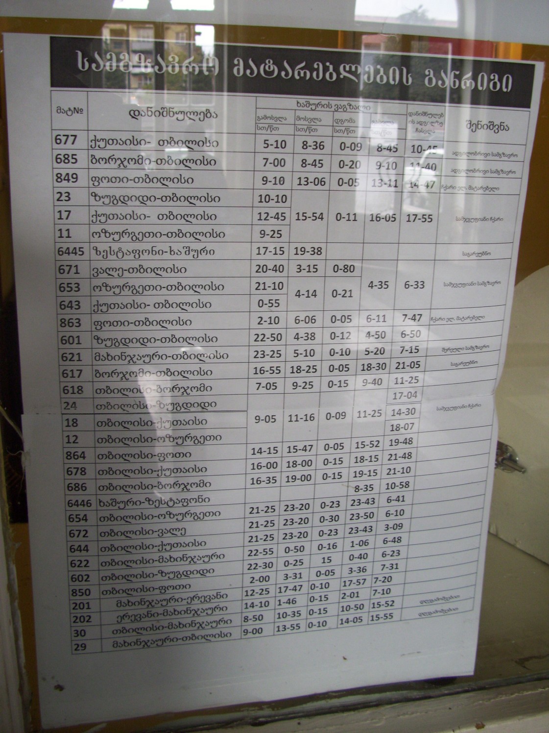 Расписание движения поездов по станции Хашури (кроме поездов на Сурами).