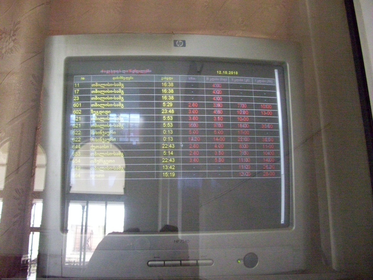 Тарифы на проезд и англоязычное расписание на станции Гори.