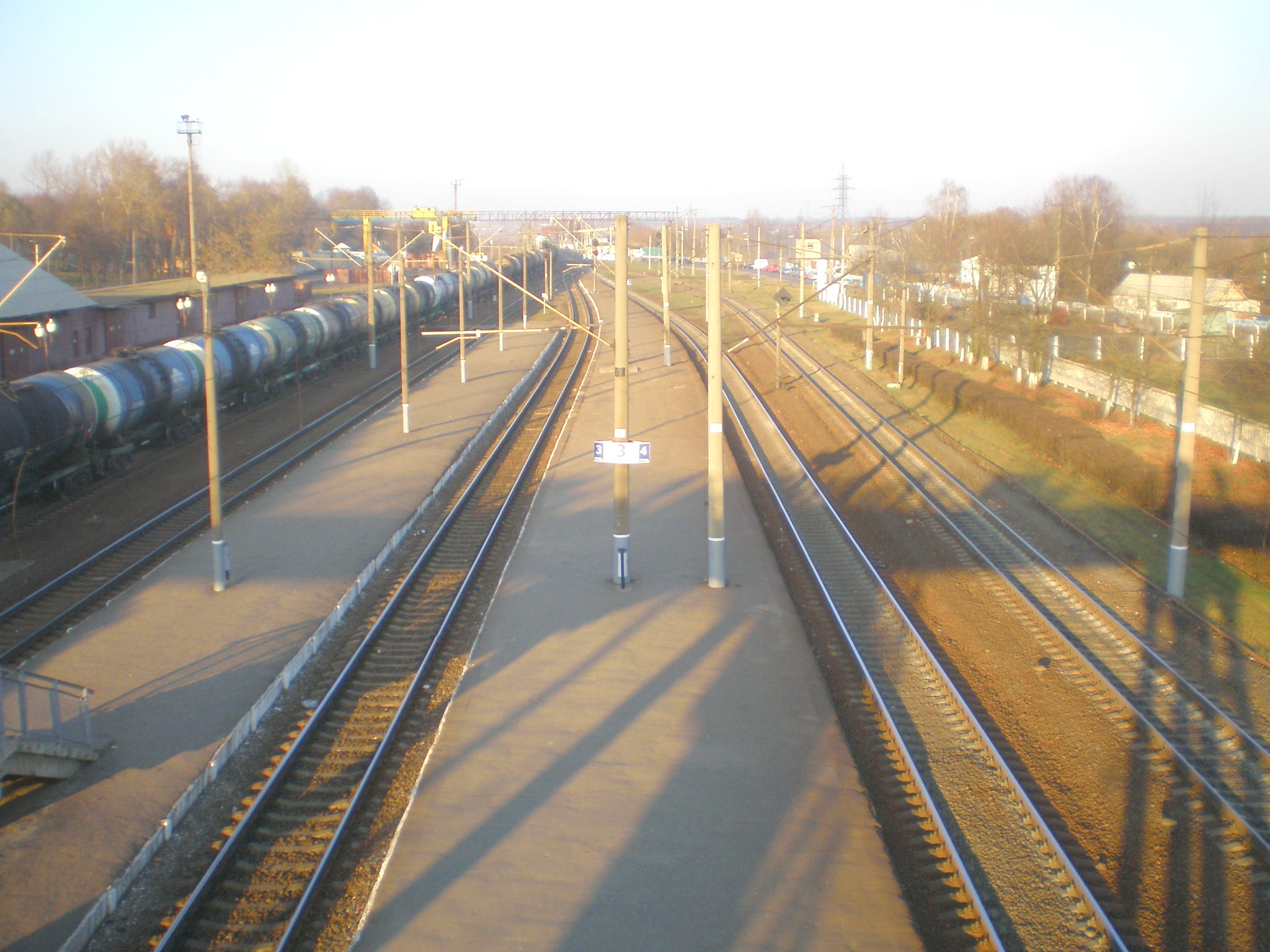 Пути станции Борисов. Вид с переходного моста в западном направлении.