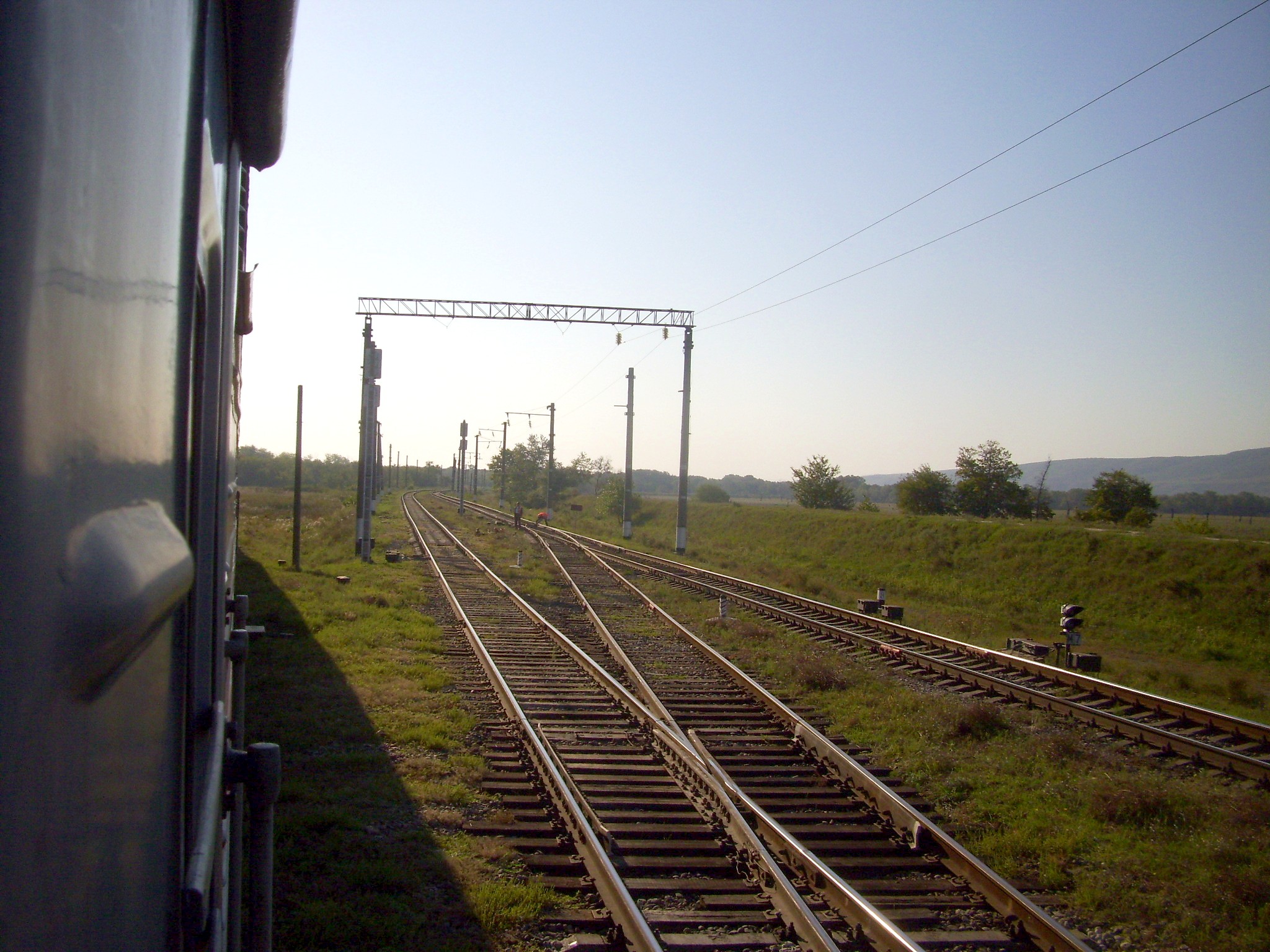 Снимок сделан из поезда, следующего в сторону Кизляра.