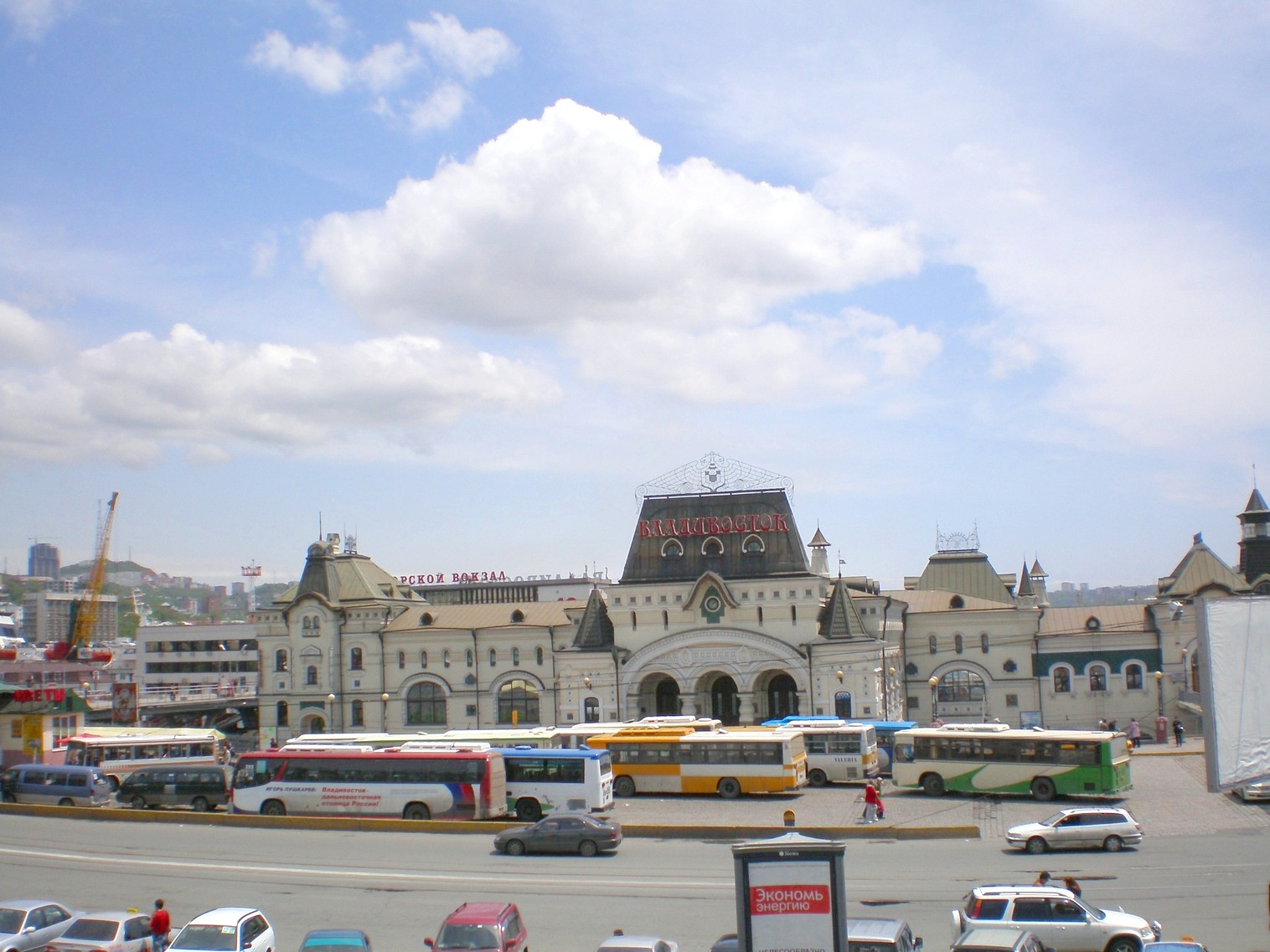 Вокзал на станции Владивосток. Вид с переходного моста.