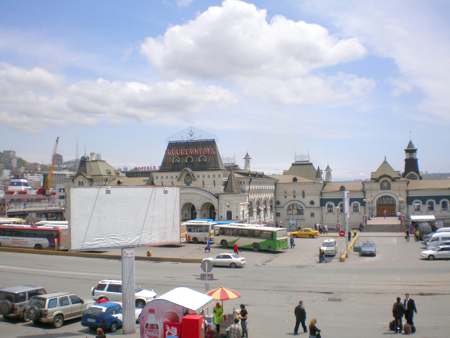 Станция Владивосток. Вид в южном направлении. Памятник, символизирующий окончание