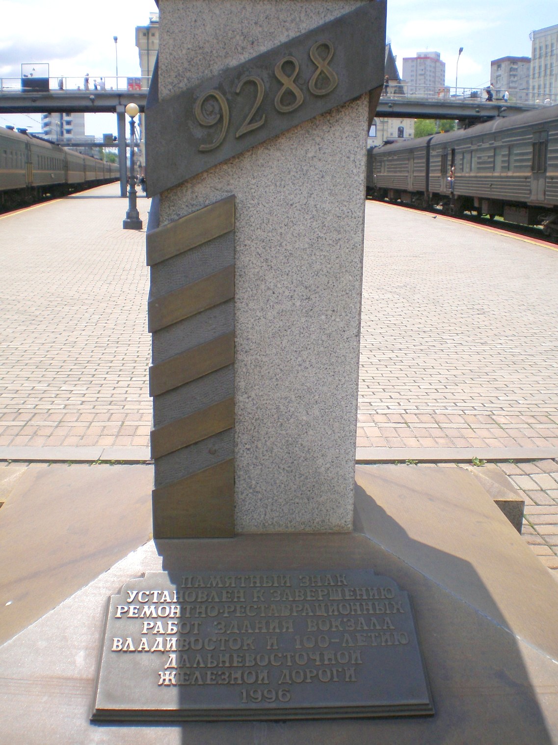 Станция Владивосток. Памятник, символизирующий окончание Транссибирской железнодорожной магистрали.