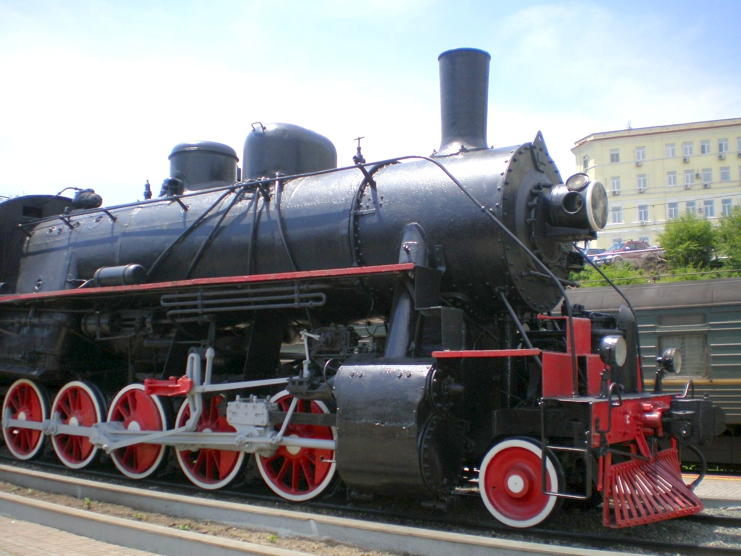 Станция Владивосток. Паровоз-памятник Еа-3306.