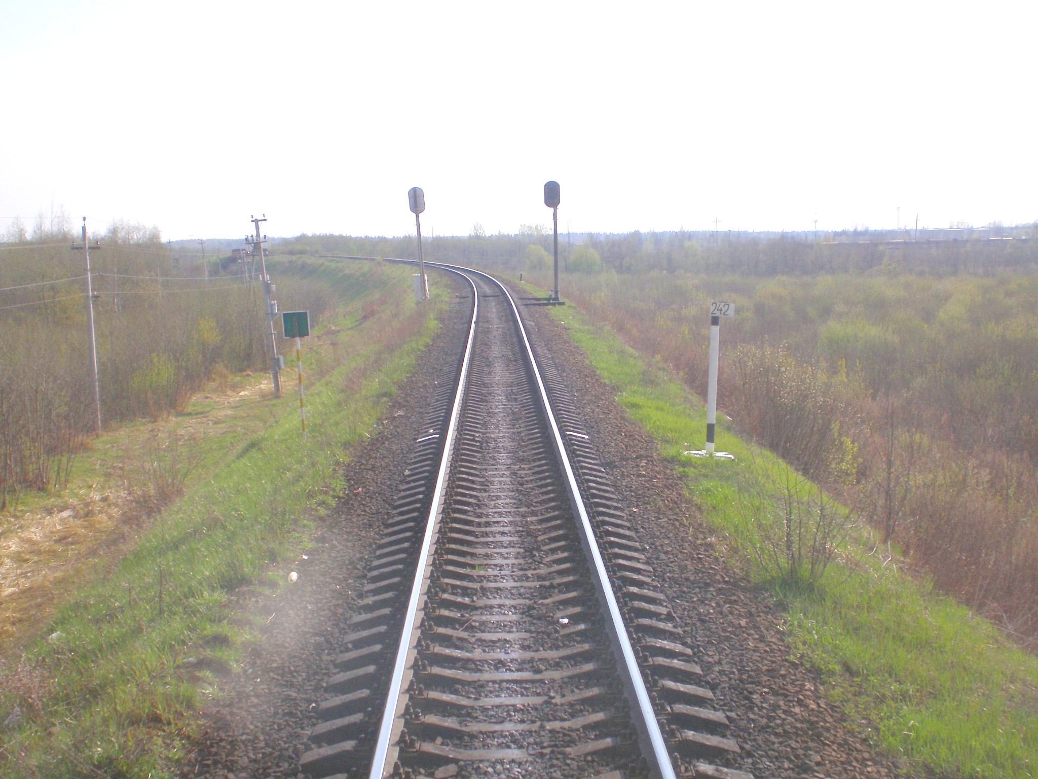 Несколько ближе к разъезду 241 км (конец 242 километра/начало 243 километра). Вид в сторону станции Дно.