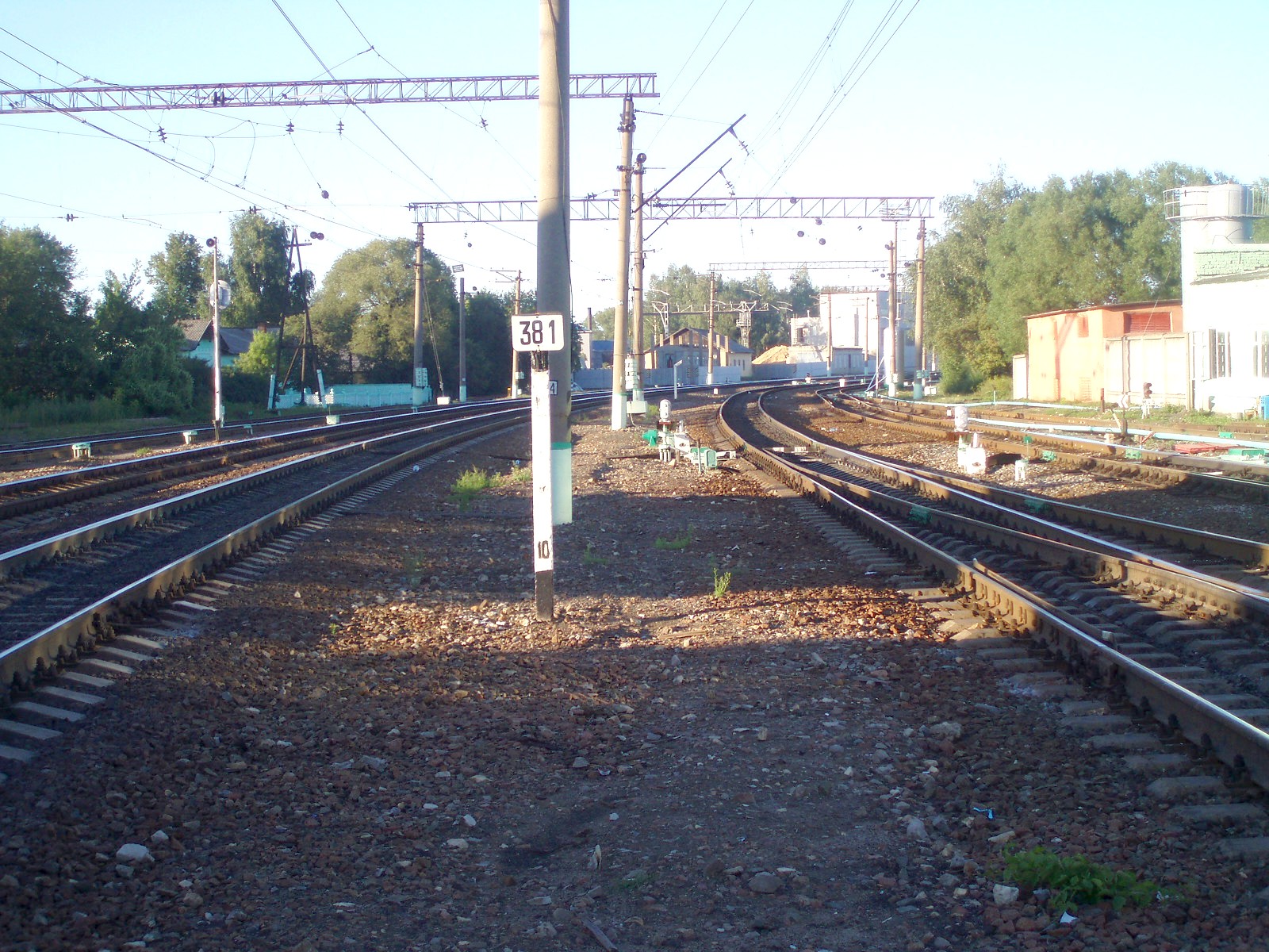 Пути на станции Сасово. Вид в западном направлении. Вдали находится вокзал.