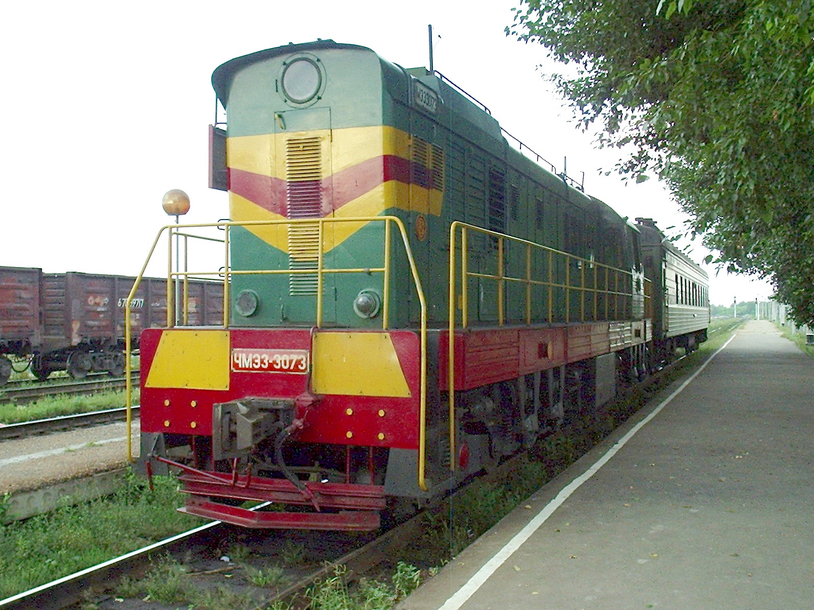 Тепловоз ЧМЭ3-3073 с пригородным поездом сообщением Сенная — Возрождение