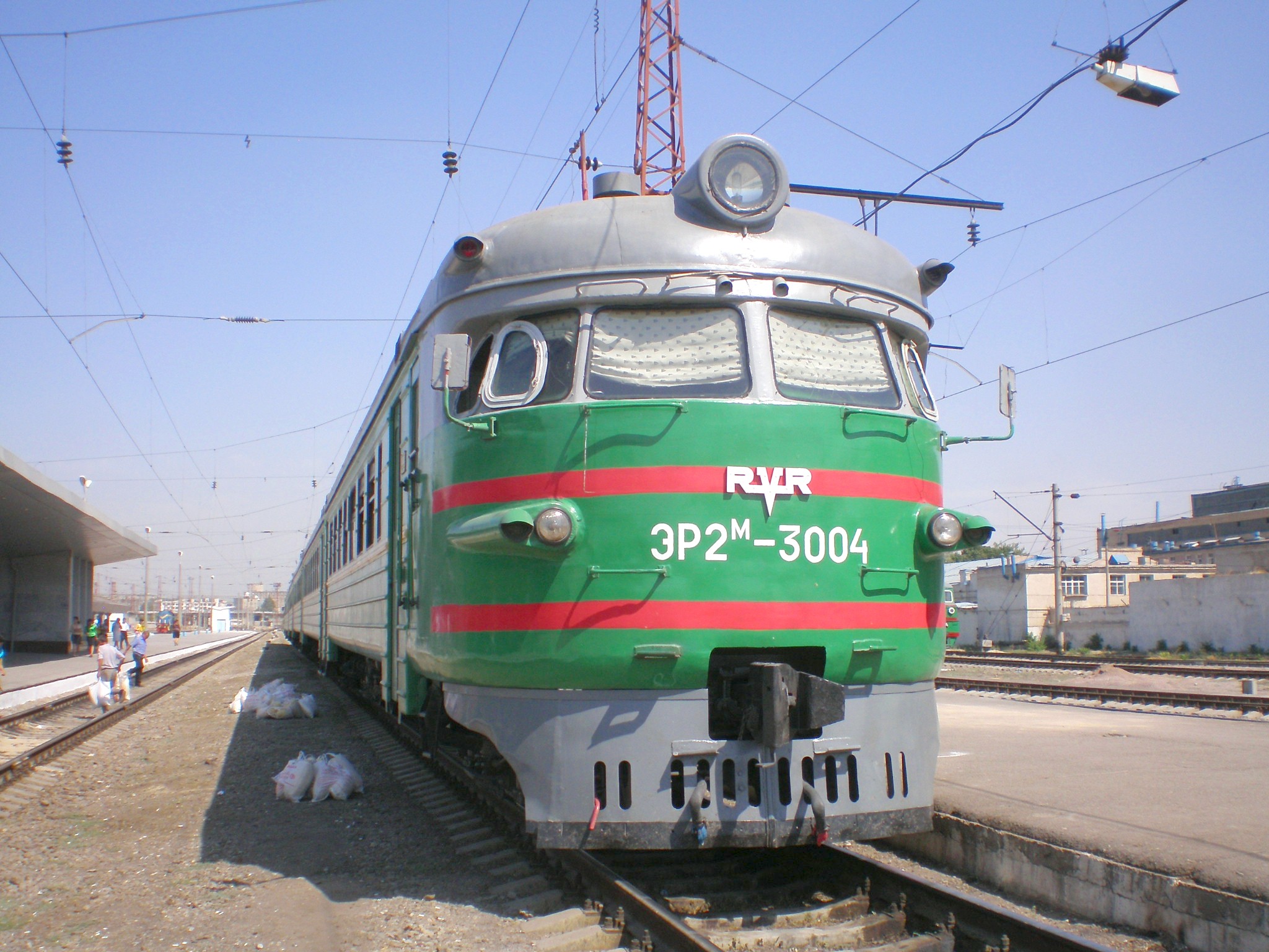 Электропоезд ЭР2м-3004 (переоборудован для работы на переменном токе) на станции Ташкент-Центральный-Пассажирский.