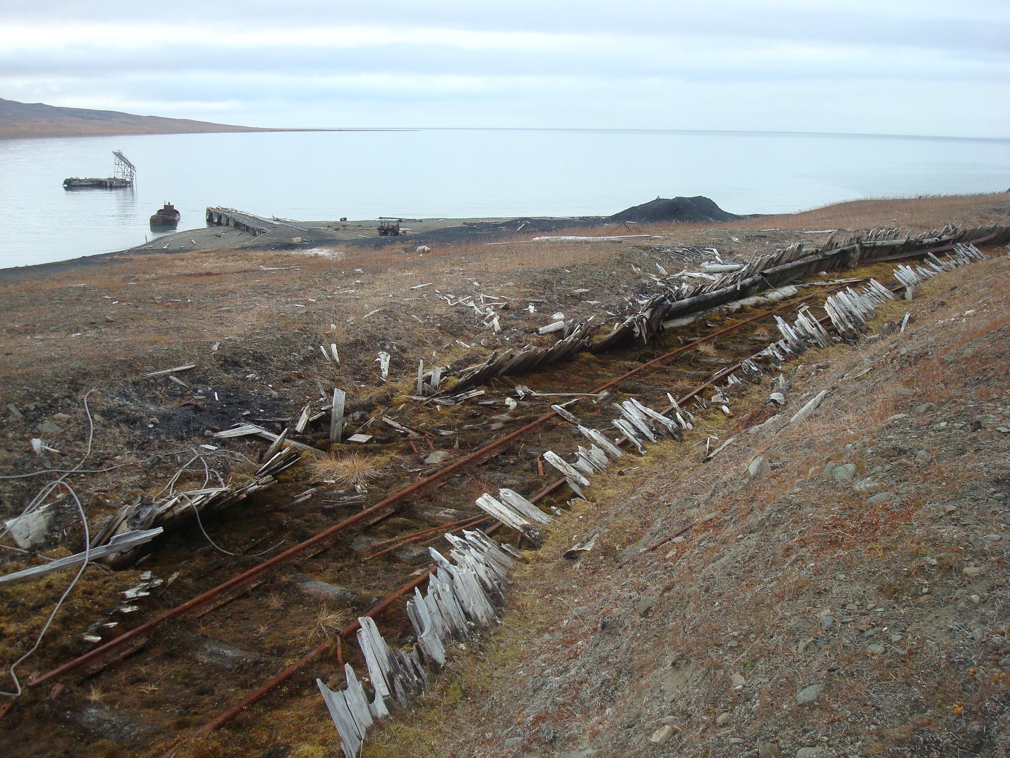 Остатки сооружения для подъёма на берег малотоннажного флота треста «АрктикУголь».